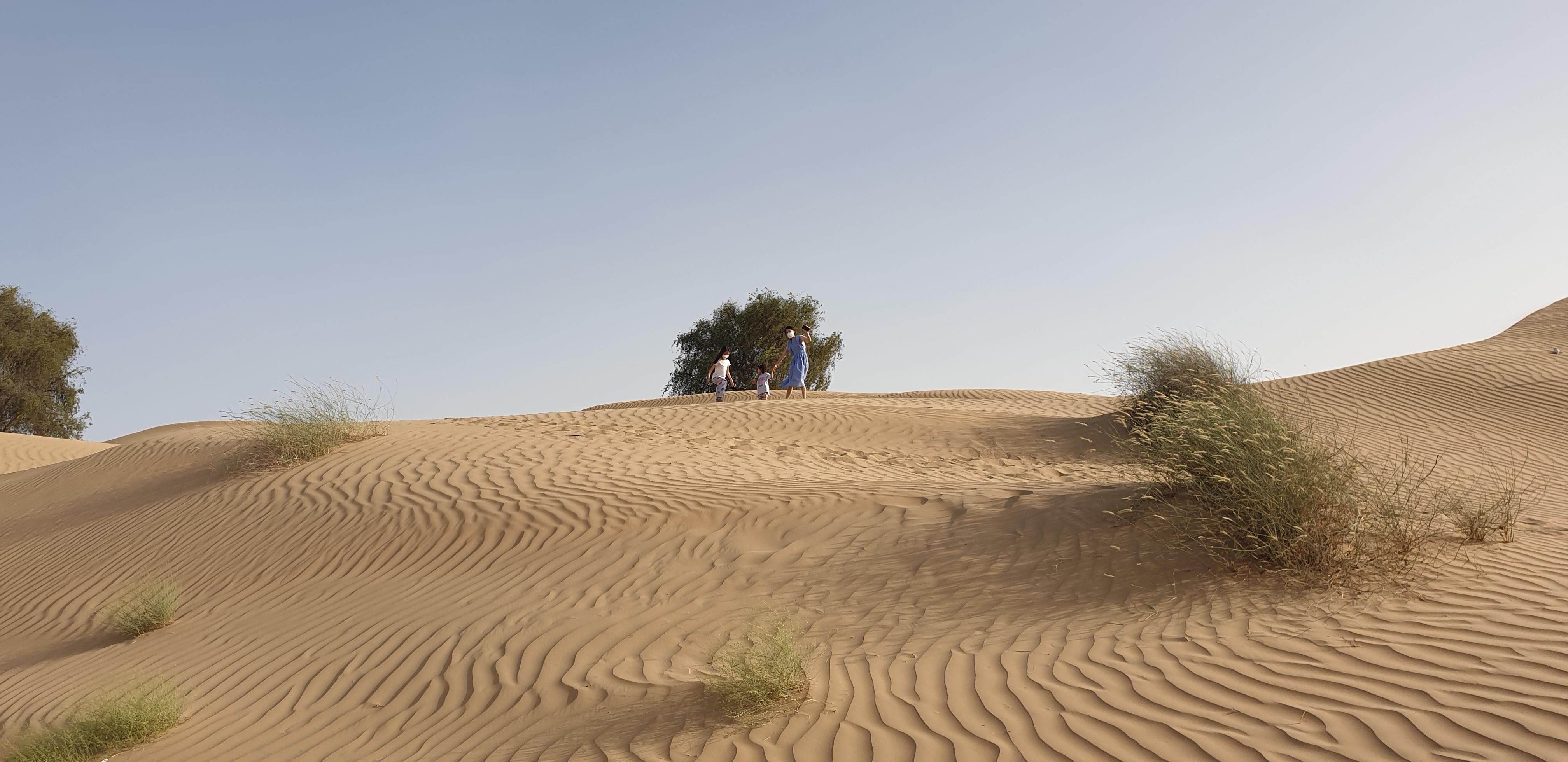 우리 가족이 쿠웨이트에 거주한 지 벌써 7년 차지만 사실 지금까지 사막하면 바로 떠오르는 모래 언덕을 직접 본 적은 없습니다. 쿠웨이트에 모래 언덕 사막이 없기도 하고 그렇다고 UAE에서 사막 투어를 따로 하고 싶지는 않아서 그동안 본 적이 없었는데 이번 휴가에는 차를 타고 직접 사막을 보러 가기로 했습니다. 구글맵으로 검색을 하니 숙소에서 두바이 내륙 쪽으로 약 60 km 정도 들어가면 적당한 사막이 있길래 그쪽으로 가봤습니다.