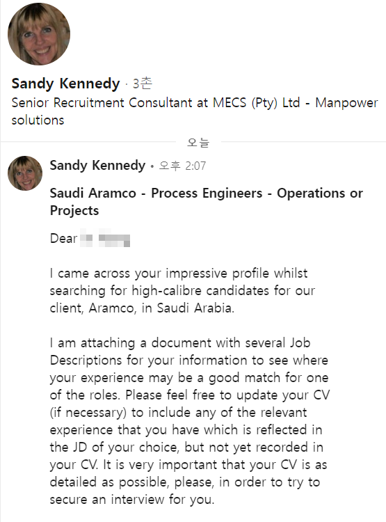 오늘은 헤드헌터로부터 사우디 아람코에 지원할 의사를 물어보는 연락도 직접 받았다.