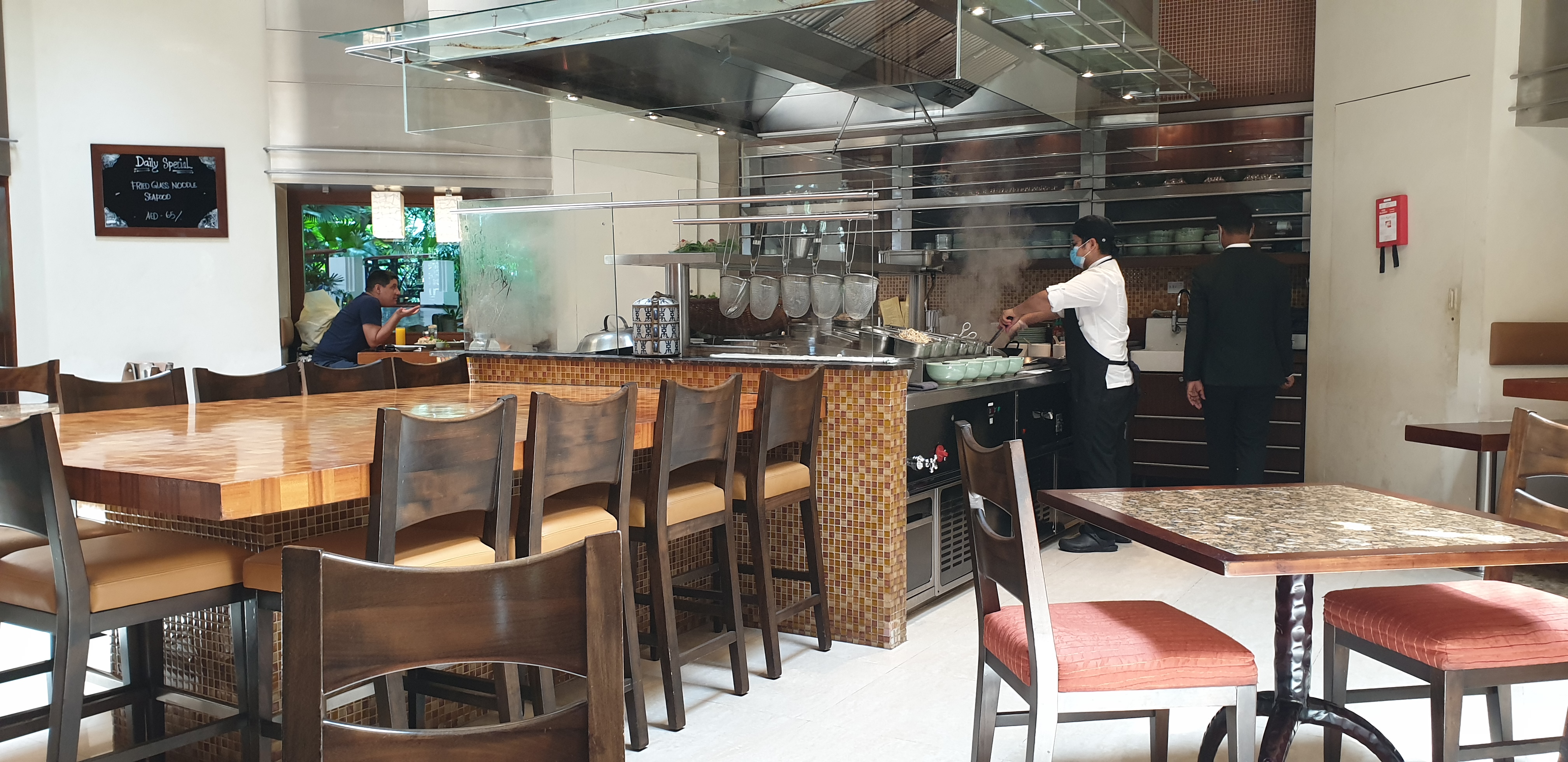 주방은 오픈 키친 형태로 되어 있어 Wox로 요리하는 모습을 볼 수 있습니다. 코로나 사태로 두바이를 거의 2년 반만에 방문하는데 원래 계시던 흰머리 셰프 할아버지는 은퇴하셨는지 더 이상 안 보였습니다.