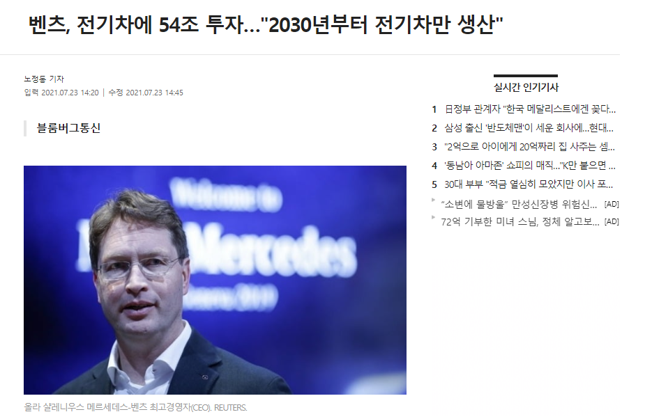 메르세데스 벤츠는 용감하게 2030년부터 전기차만 생산하겠습니다! 라고 선언을 했다가...