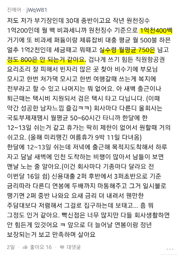 위 파일럿 연봉은 코로나 이전인 3-4년 전 정보임으로 2022년 실제 연봉은 아마 위보다는 높을 것이다. 위 내용을 기준으로 추정컨대 2022년 기장 기준 연봉은 세전 2억 전후가 될 것으로 보인다. 여전히 웬만한 국내 직장인 연봉보다는 훨씬 높은 수준이다.