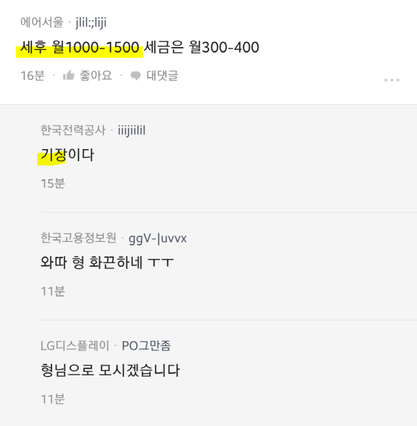 파일럿은 되기 어려운 만큼 연봉도 상당하다는 것을 많이들 알고 있다. 대충 1억 이상은 번다고 다들 알고 있지만 가장 정확한 내용은 실제 파일럿이 얘기하는 내용일 것이다. 그래서 본인 직장을 인증하고 가입할 수 있는 블라인드에서 실제 파일럿이 얘기한 연봉은 아래와 같다.