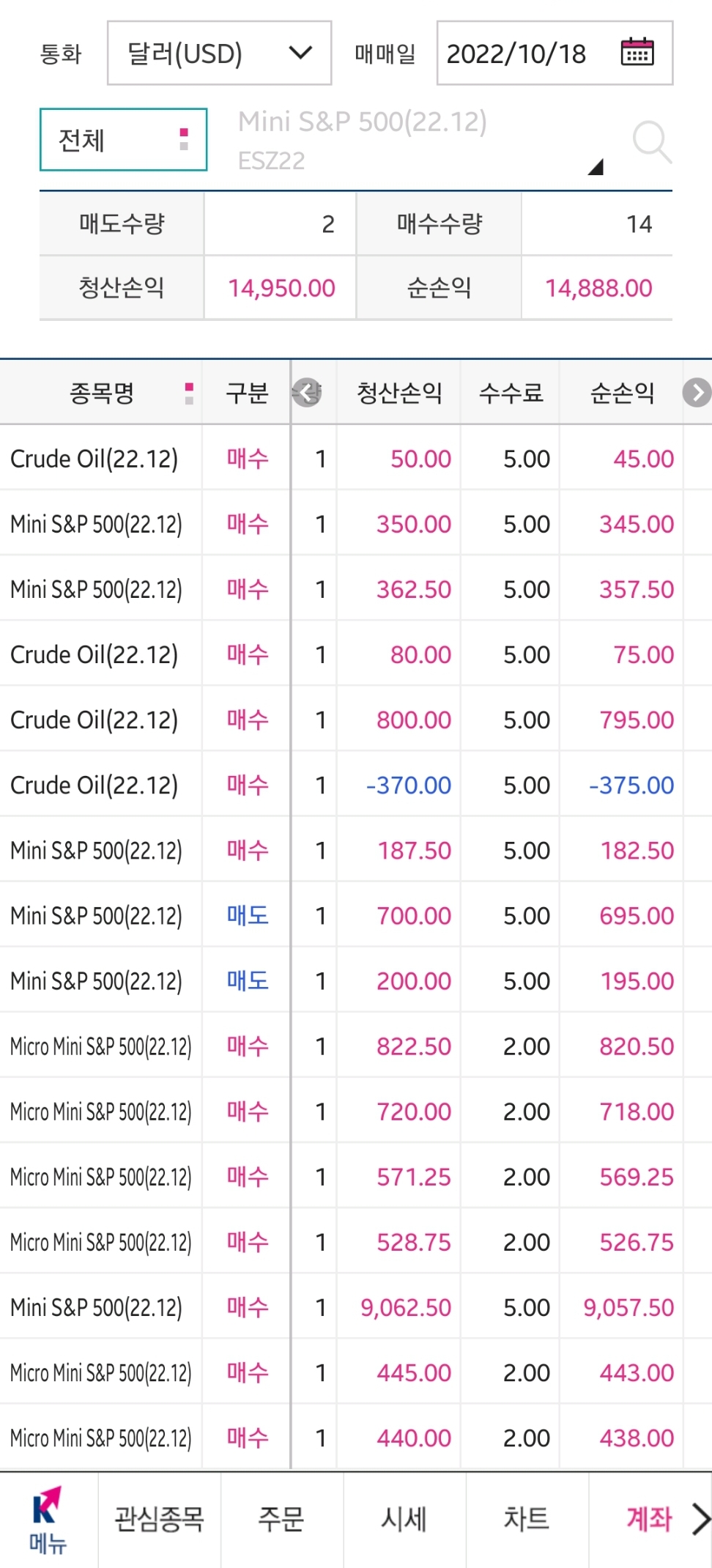 그대로 매매를 끝내려다가 심심해서 Crude Oil 및 S&P500 지수로도 초단타 매매를 조금 했다.