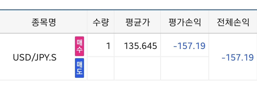나는 물론 USD/JPY 매수 포지션에 진입하자마자 손실이 발생하는 중이다.