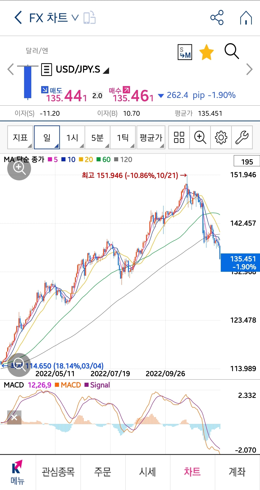 청산한 금액 중 일부는 해외 주식을 추가로 매수했고 나머지 금액은 내일 그대로 출금해서 주식담보대출을 상환하려다가 그 중 $10,000을 FX마진 거래 계좌로 이체한 후 정말 오랜만에 USD/JPY 매수 포지션 1 계약을 진입했다.