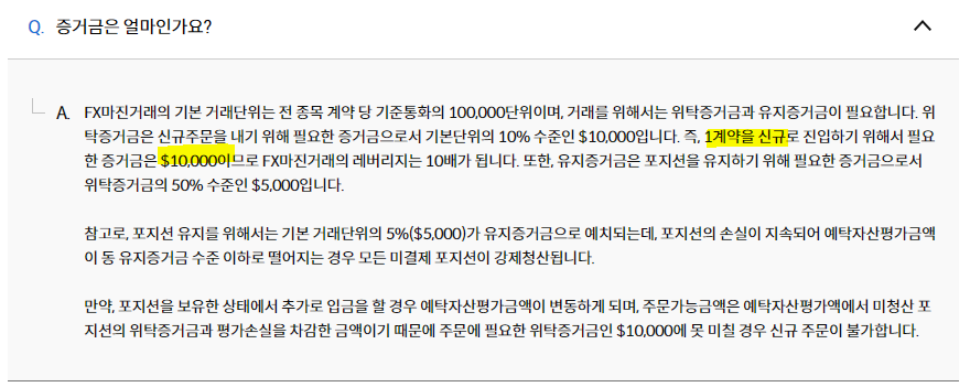 아래는 FX마진에 대한 대략적인 정보다. 현재 사용하고 있는 키움증권에서 가져온 내용이다.