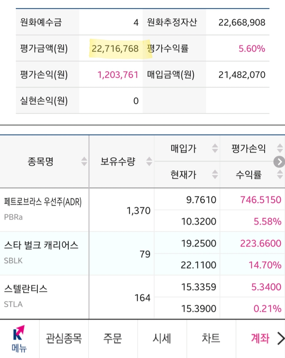 오늘이나 다음주 월요일에 페트로브라스 배당금 (세후) 약 $2,600 정도가 입금될 것으로 예상되는데 해당 배당금이 입금되면 당연히 기존 보유 주식 수량 늘리는 데에 사용할 계획이다.