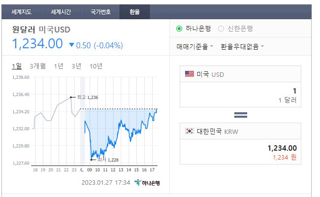 오늘 기준 환율은 달러 당 1,234 원으로 지난 포스팅 글 기준 환율 1,340 원 대비 약 8%의 하락이 있었다. 환율이야 계속 변동하기 나름이고 미국 주식 자산 보유 주 목적은 분산 투자이기에 환율 변동은 크게 중요치 않다.