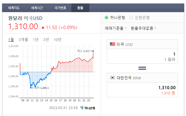 지난 번에 글을 작성할 때만 해도 환율이 계속 하락만 할 것 같은 분위기였는데 환율은 어느새 반등을 해서 현재 약 1,310원 수준을 보이고 있다. 지난 글에는 환율이 1,234원이었으니 약 6% 정도의 상승이 있었다.