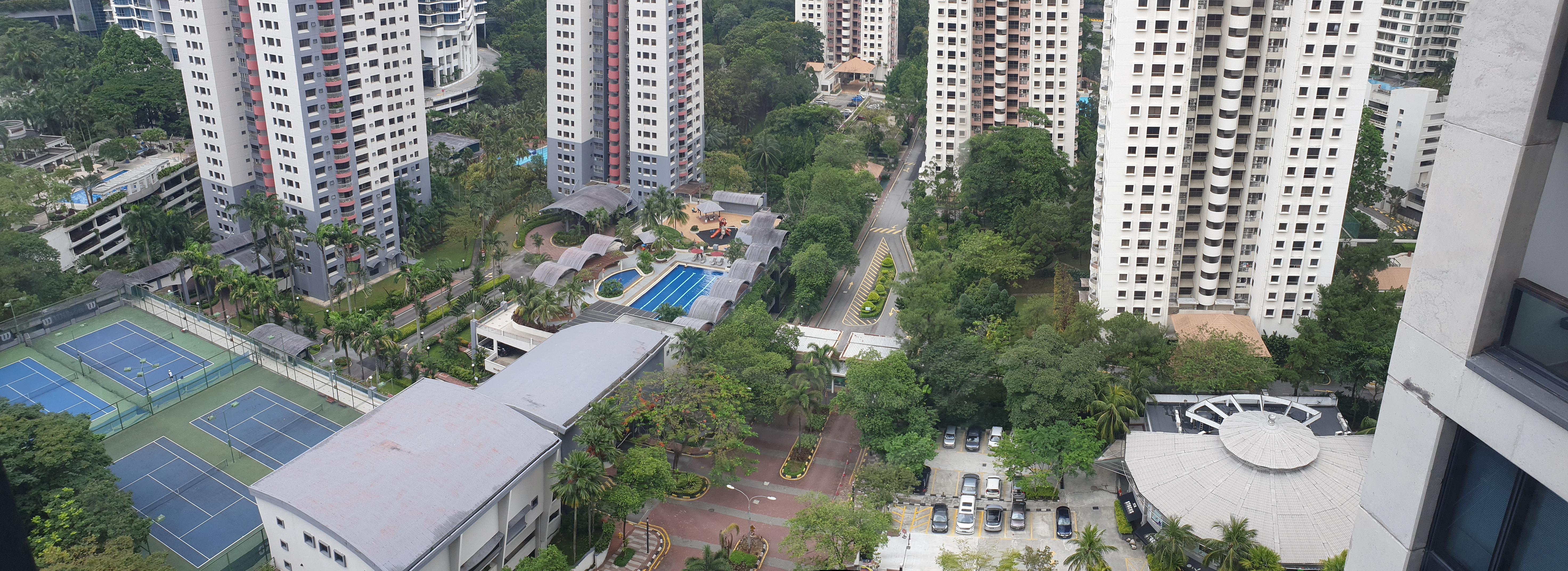 숙소에서 창 밖을 바라보니 정말 아파트 단지마다 수영장이 있다. 아래 사진에만 수영장 5개가 보임.