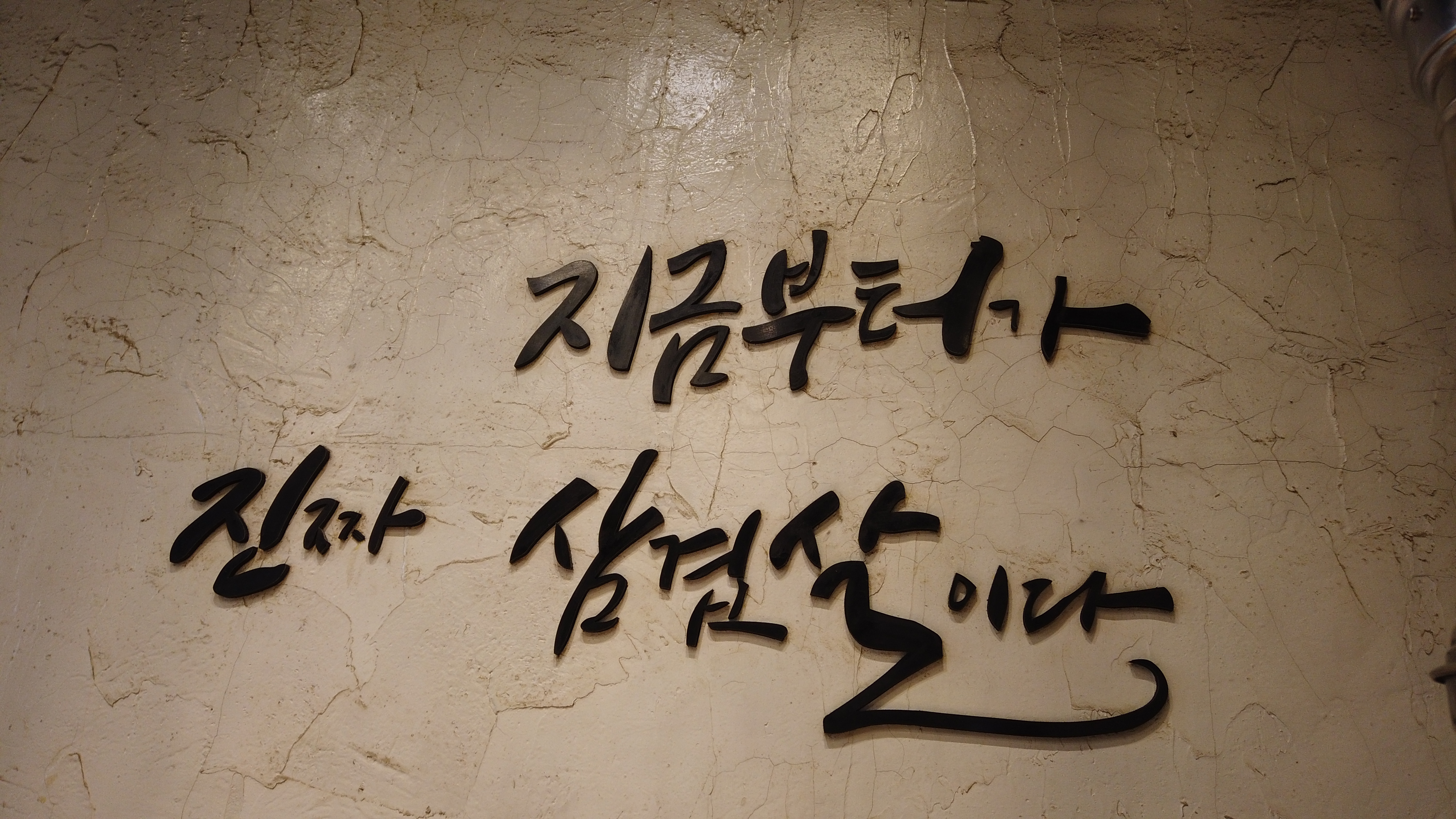 벽에 붙은 문구에서 삼겹살 자부심이 느껴진다. ㅎㅎ