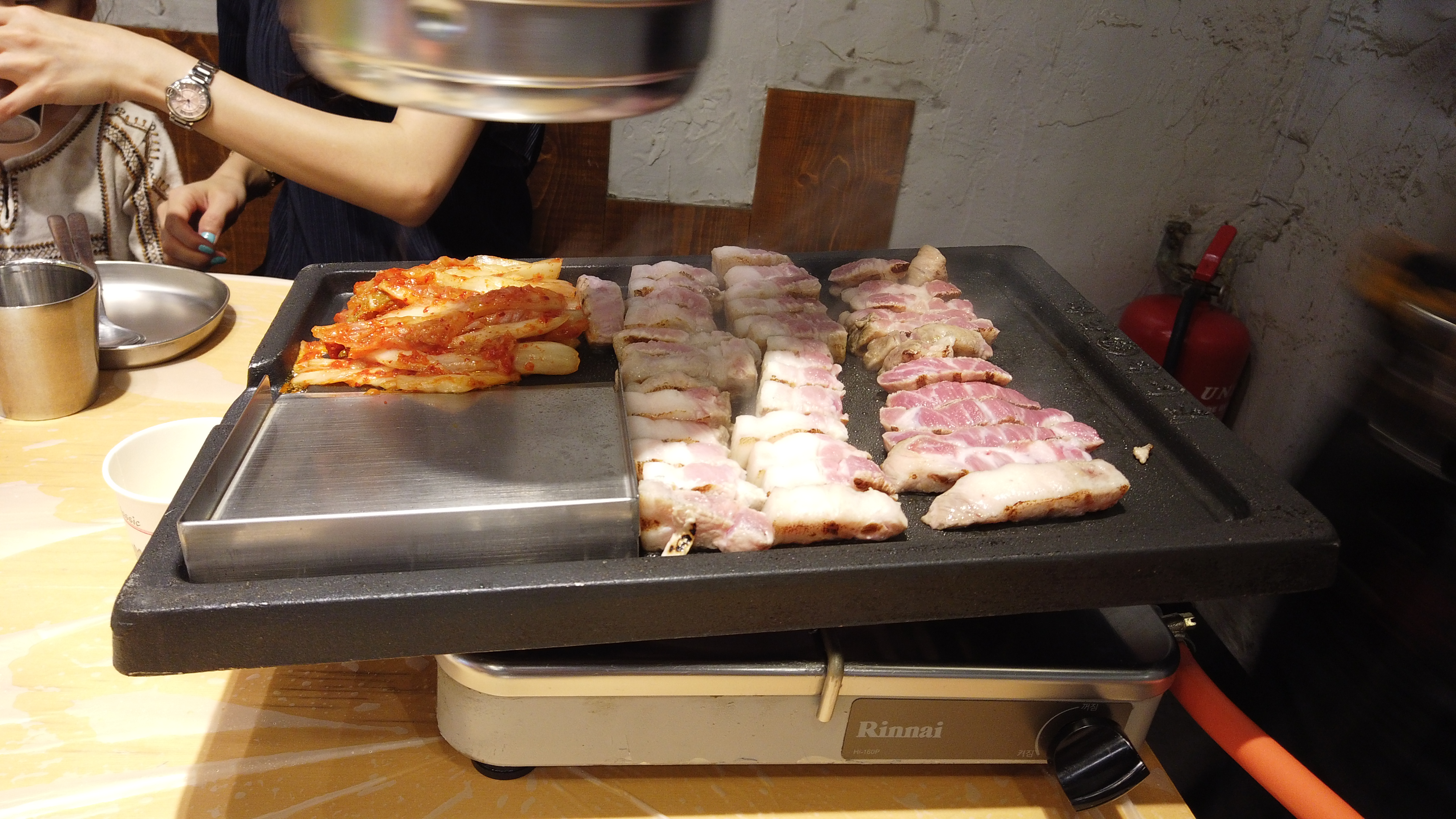 우선 고기 한 판을 주문. 삼겹살과 목살 그리고 항정살로 구성되어 있는 세트 메뉴다.
