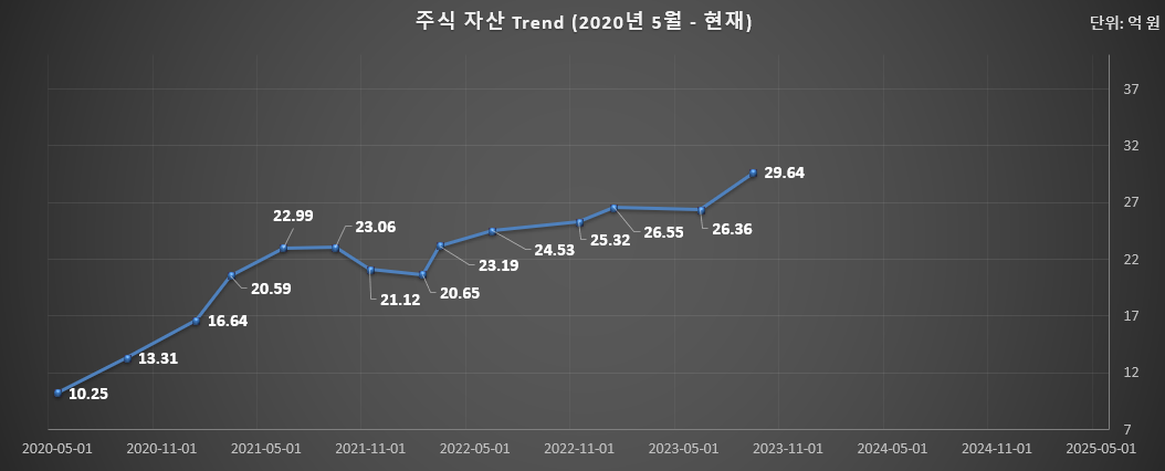 현재 주식 평가금액은 29.72 억원. 하도 궁금해하는 사람이 많아 계산을 해보니...