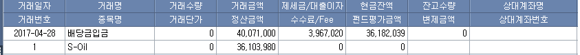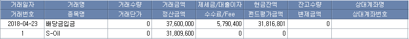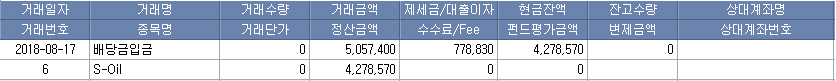 정제마진이 회복되면서 S-OIL 실적은 좋아졌고 2016년 기말 배당금을 시작으로 이후 배당금도 크게 증가했다. 입금된 배당금으로는 S-OIL 주식을 더 사모았다.