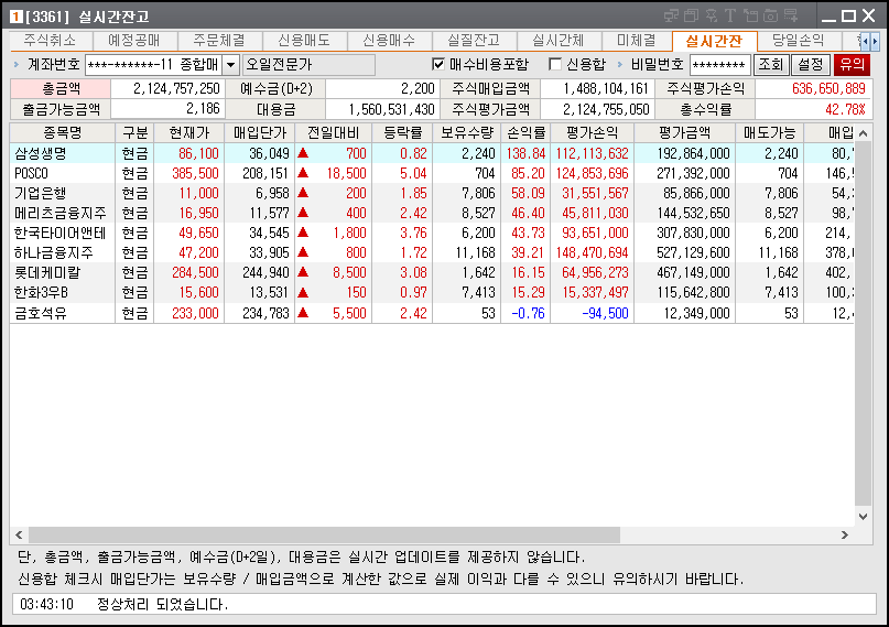 가장 최근에 활용한 대출은 가지고 있는 삼성생명 연금보험을 담보로 한 대출이다. 실적에 비해 꽤 하락한 금호석유와 배당성향 하락을 공시한 이후 꽤 크게 하락한 메리츠금융지주를 추가 매수하는데에 사용을 했다. 보험담보대출을 활용한 이유는 현재 사용하는 증권사의 주식담보대출이 막혀있기 때문이다.