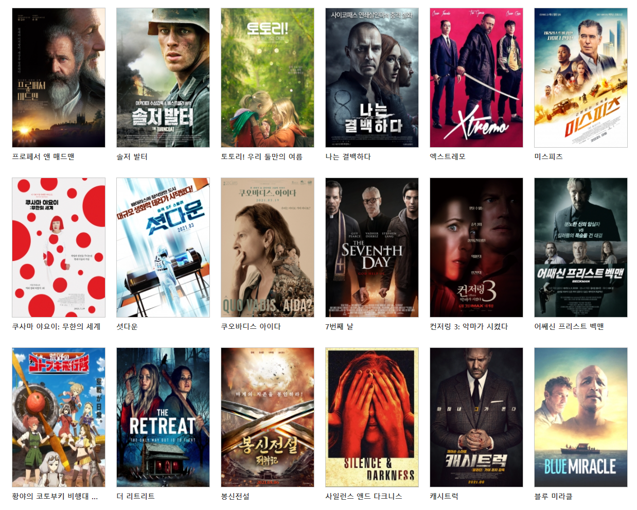 사실상 무료로 볼 수 있는 것에 더해 사이트 운영자가 넷플릭스, 아마존, 디즈니 플러스 등 온갖 스트림 서비스에서 영화를 가져오기(?) 때문에 그냥 한 사이트에서 웬만한 건 다 찾아볼 수 있다. 최근에 본 영화 중에는 제이스 스타뎀이 주연한 캐쉬트럭을 재밌게 봤다. 강추.