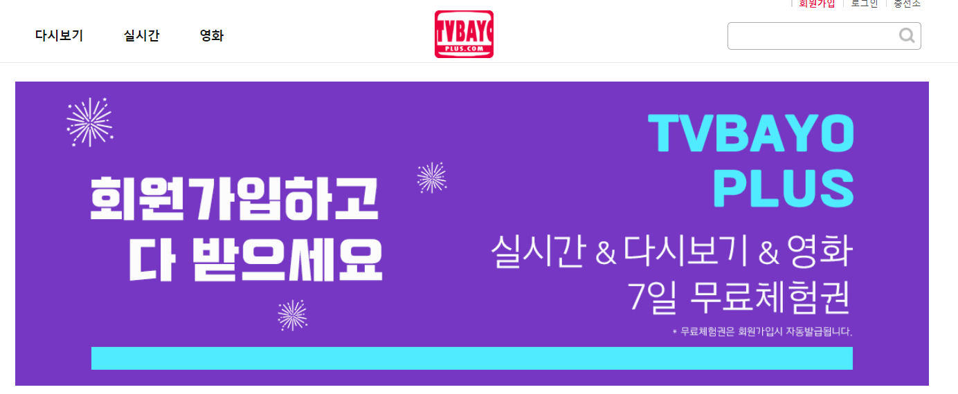 해당 사이트는 바로 www.tvbayoplus.com 이다. 회원 가입을 하면 7일 동안 무료로 사용할 수 있는데 일주일마다 회원 가입을 반복하면 사실상 무료로 계속 볼 수 있다. 이게 귀찮다면 유료 가입을 하면 되는데 가격이 썩 착하지 않기 때문에 나는 그냥 일주일마다 새로 가입을 하고 있다.