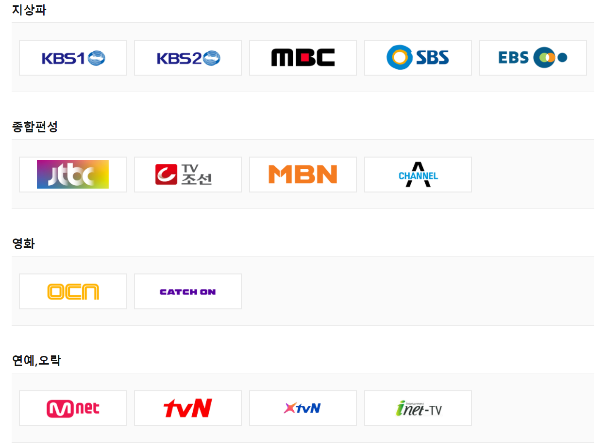 실시간 방송을 볼 수 있는 채널은 아래와 같다. 해외는 한국과 시간대가 다르기 때문에 아무래도 실시간으로는 자주 안 보게 된다.