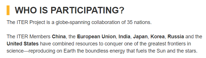 ITER is the world’s largest fusion experiment. Thirty-five nations are collaborating to build and operate the ITER Tokamak, the most complex machine ever designed, to prove that fusion is a viable source of large-scale, safe, and environmentally friendly