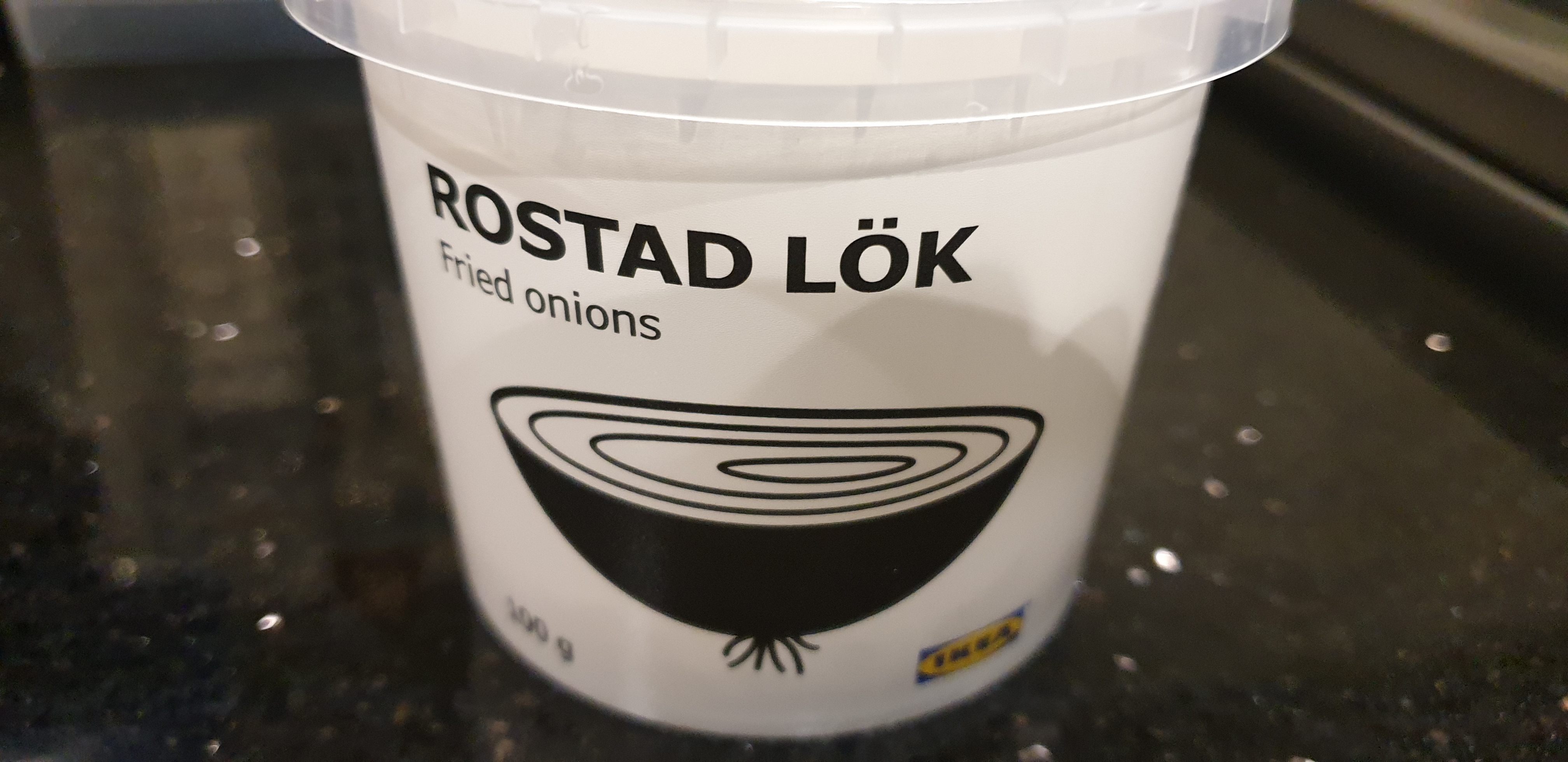 원래 미고랭에는 튀긴 마늘 부스러기가 있어야 하는데 우리 집에는 없기 때문에 이케아에서 산 튀긴 양파 부스러기를 준비한다.