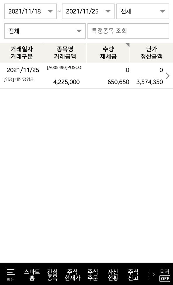 어제 POSCO 3분기 배당금이 입금되었다. 배당금으로는 주식을 사모아야 복리 효과를 누릴 수 있는데 현재 대출이 있는 관계로 대출 상환에 모두 사용했다. 당분간 배당금으로는 대출 상환에 모두 사용해야 해서 아쉬울 뿐이다.