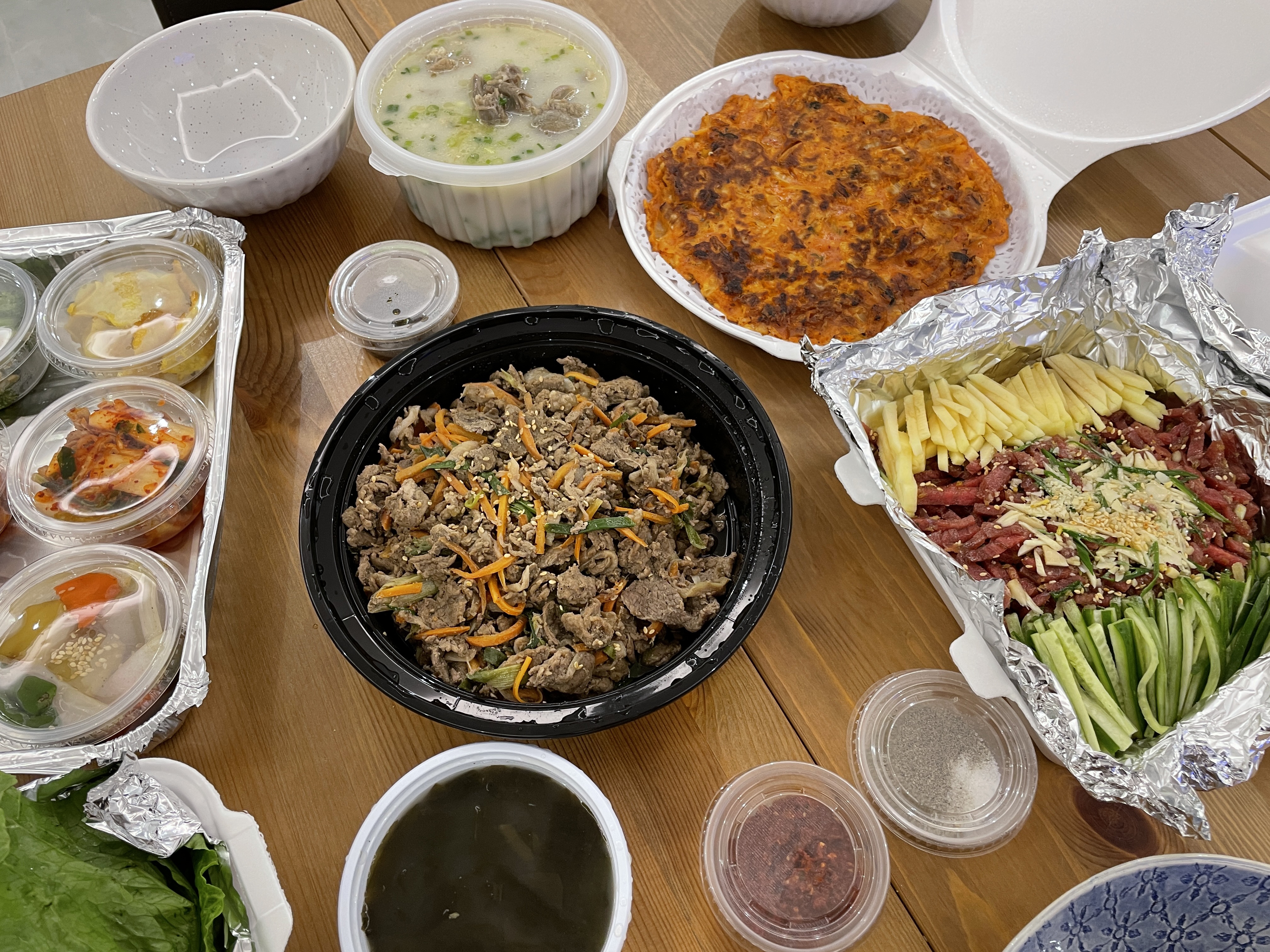 음식 주문에서 배달까지는 약 1시간 정도 걸렸고 한국인 직원분이 직접 배달 오신다. 김치전, 각종 반찬류 그리고 미역국은 서비스로 주셨다. 현지에서 오랜 기간 영업을 계속 한 식당은 매우 높은 확률로 맛은 보증된다. 주문한 음식 모두 맛있게 먹었다.
