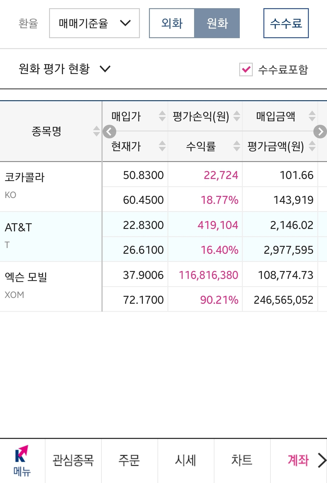 미국 주식의 경우 실제 배당금은 아래와 같을 것으로 99% 확신한다. 국내 기업과 달리 아래 미국 기업의 경우, 특히 엑슨모빌은 배당금을 동결하면 동결했지 인하시키는 경우가 한 번도 없기 때문이다. 미국 주식의 경우 연 배당금 세후 약 1,034 만원을 예상한다 (분기 배당 258.74 만원 X 4).