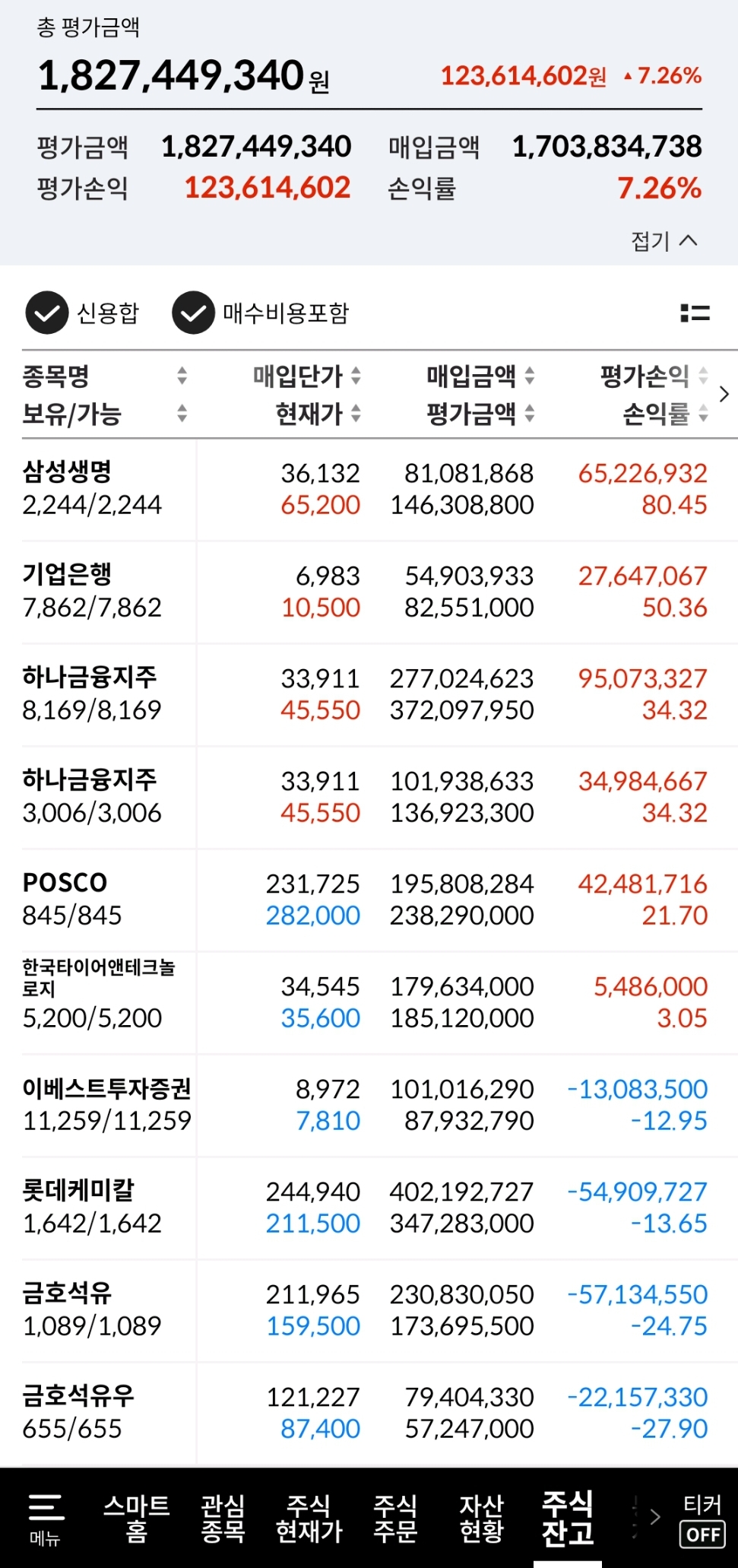 내가 현재 보유하고 있는 주식 종목은 아래와 같다. 2022년 1월 21일 종가 기준 국내 주식 18.27 억 원, 미국 주식 2.49 억 원으로 총합은 약 20.76 억원이다. 2021년 정점에는 총 평가 금액이 약 23 억원이 되기도 했지만 최근에 국내 증시가 좋지 못한 흐름을 보이면서 약 2 억원이 넘는 평가금액 하락이 있었다.