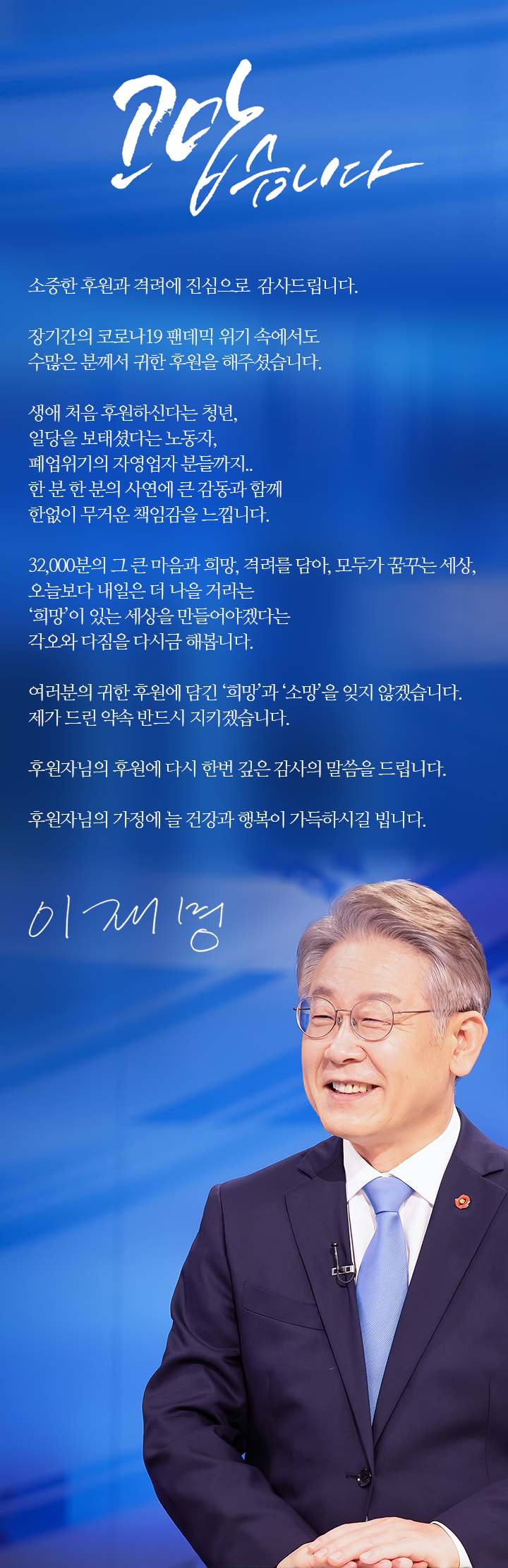 대한민국의 미래를 위해 이재명을 지지합니다.